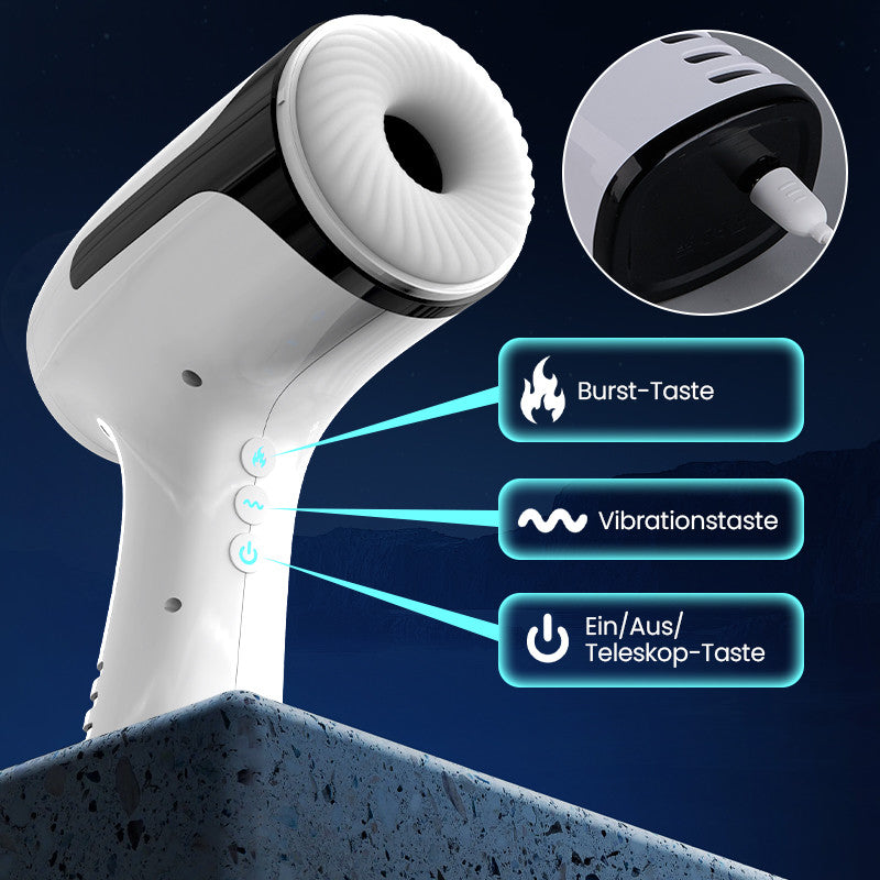 4 stoßende Vibrationen mit einstellbarer Intensität zur Nachahmung der rhythmischen Bewegung einer echten Ejakulation.